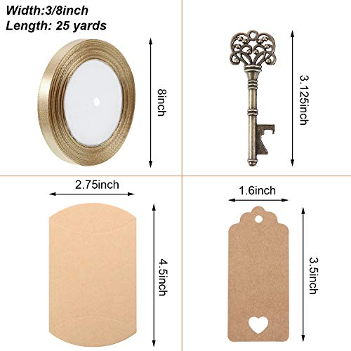 Pacchetto: Questa borsa regalo per bomboniere è elegante e piena di significato, realizzata in scatola di caramelle con cuscino Kraft, abbinata a apribottiglie a forma di chiave, legate da un nastro aggraziato e tag regalo Kraft. Questo souvenir regalo unico sorprenderà sicuramente i tuoi amici e ospiti. Come renderlo un bellissimo regalo: 1. Impilare la scatola dei cuscini, chiudere un lato mentre l’altro lato è aperto. 2. Riempi in caramelle o burro, o anche una fotografia graffiata di Mr & Mrs nella scatola. 3. Chiudi l’altro lato della scatola dei cuscini mentre finisci di riempire. 4. Scrivi i tuoi migliori auguri ai tuoi amici e ospiti più cari sul tag regalo bianco. 5. Tagliare la lunghezza adatta del nastro (suggerito da 0,5 iarde) 6. Stringa prima il tag regalo, poi stringa l’apri chiave con il nastro. 7. Lega la scatola dei cuscini con il nastro e crea un bellissimo bowknot. 8. La colla non è consigliata per la scatola dei cuscini, il nastro li legherà bene. Tag regalo: Forma: rettangolare con amore-cuore Dimensioni: 3,5 x 1,6 pollici Funzioni: può essere adattato con marcatori/ timbri o inchiostro Adatto per matrimoni, lauree, feste, etichette di stoffa, cartellini dei prezzi, etichette regalo, etichette segnalibro, toppers cupcake, alberi dei desideri, note d’amore, prenotazione rottami, ecc. Il nastro: Caratteristica: single sided Colore: champagne Dimensioni: 3/ 8 pollici di larghezza e ogni rotolo di lunghezza totale è di 25 metri Nota: Il nastro viene spedito in un rotolo, puoi tagliare da solo una lunghezza adatta, la lunghezza suggerita è di 0,5 iarde ciascuno. Fai attenzione quando usi le forbici Il pacchetto include: 100 x Scatole di cuscini Kraft 100 x Antico apribottiglie con chiave in bronzo 100 x Tag Kraft con amore-cuore 2 Rotoli os 25 yarde nastro di seta color champagne