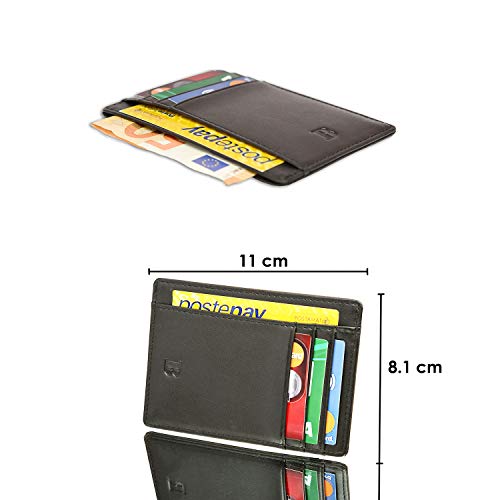 Sogni di uscire da solo o in compagnia senza avere le tue tasche appesantite? Avendo con te le tue carte o contati? Dimensioni Record! ✓ Misura solamente: 11″cm X 8.1″cm ✓ Spesso solamente: 0.45″mm ✓ Leggero e capiente pesa solo: 27grammi ✅TANTI SCOMPARTI: ➤ 4 Tasche per le tue più importanti Carte di Credito/Debito/Bancomat/Note o altro. ➤ 1 Ampia Tasca centrale per le tue Banconote. ➤ 1 Finestra trasparente per Badge di Lavoro/Patente di Guida/Carta d’intità ecc… ➤ 1 Tascha Laterale per Carte di Credito/Debito/Bancomat/Note/Biglietti da Visita/Note o altro. ✅PELLE RESISTENTE: Materiali interni ultra resistenti, studiati appositamente per garantirvi un’esperienza più possibile duratura nel tempo. ✅GARANZIA Italiana: Azienda italiana, molto orgogliosa dei nostri prodotti e quindi offriamo una GARANZIA di 24 MESI, soddisfatti o rimborsati ! Cosa aspetti, CONCEDITI un regalo finalmente desiderato ad un PREZZO CONVENIENTE. Non farti mancare questo prodotto dell’eccellenza ITALIANA!
