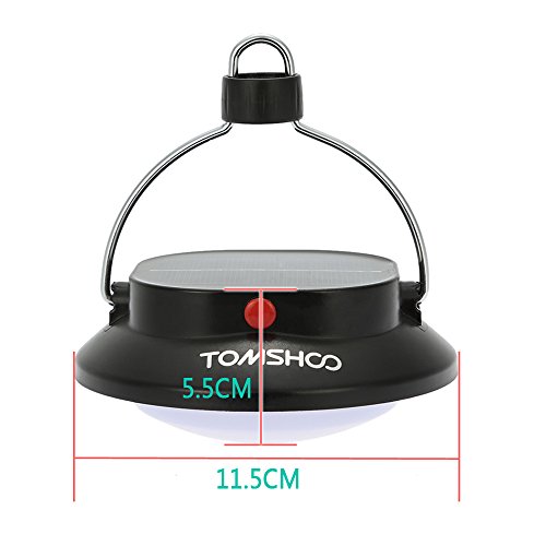 TOMSHOO Lampada Solare Campeggio Questa lampada da campeggio è dotato di 12 LED bianco ultra luminoso e 3 livelli d’illuminazione. Ha una batteria ricaricabile che può essere alimentata da pannelli solari e ricarica USB.Cosa c’è di più, può essere utilizzato anche come un caricatore di emergenza per il tuo cellulare. Leggero, compatto e resistente, è un must per pesca notturna, campeggio, escursionismo e altre attività all’aperto. ☑ 3 MODI DI ELETTRIFICHI : solare, USB, 18650 batteria ☑ SUPER LUMINOSA con 12 LED : super alto 200LM, campeggio, pesca, emergenza ☑ FUNZIONE CARICABATTERIE DI EMERGENZA: 1 batteria ricaricabile 18650 (1400mah) Può essere utilizzato anche come caricabatterie di emergenza per il telefono. ☑ 3 LIVELLI di LUMINOSITA’: Alto (12 LED), medio (8 LED), basso (4 LED). Luminosità regolabile per le diverse esigenze di illuminazione. ☑ MULTIFUNZIONALE ATTACCAPANNI: campeggio, escursioni,lettura, pesca ☑ PRATICO E PORTATILE: mini taglia solare campeggio lanterna, facile da portare Specifiche: Voce Colore: Nero + Bianco Materiale: ABS Plastica Flusso Luminoso: 200LM Batteria: 1 * 18650 Batteria Capacità della Batteria: 1300mAh-1400mAh Tempo di Carica Pannello Solare: 8-10h Dimensione: 11.5 * 5,5 cm / 4.5 * 2.2 in (D * H) Peso:164g/5,8 Once Dimensioni del Pacco: 12 * 11.5 * 5,5 cm / 4.7 * 4,5 * 2,2 in Peso del Pacchetto: 213g/7,5 oz Package List : 1 * 12LED Campeggio Lampada 1 * Moschettone 1 * Cavo di Ricarica USB