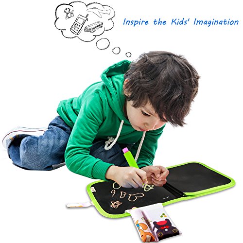 Caratteristiche: Questo è un disegno portatile, libro per la pittura del bambino periodo sensibile che principalmente inizia a circa 1 anni e mezzo dai ai anni. La custodia e cover posteriore del Portable disegno libro è fatta di tela Materiale mentre le pagine interne sono fatte di plastica. La tavola da disegno non hanno solo l’ effetto di graffiti, ma anche la saturazione colorati da pastello. Esso può essere rimosso dal panno umido, comodo da usare e pulire. Parametri del prodotto: Nome: bambini portatile lavagna gesso colorato cloth libro Dimensioni: circa 22*22 cm/8.66 * 8.66 in Accessori: con 3 gessetti, 1 portapenne Pagine: 4 pagine, 8 lati Avviso: Questo prodotto ha tre diverse cover, che abbiamo spedito a caso.